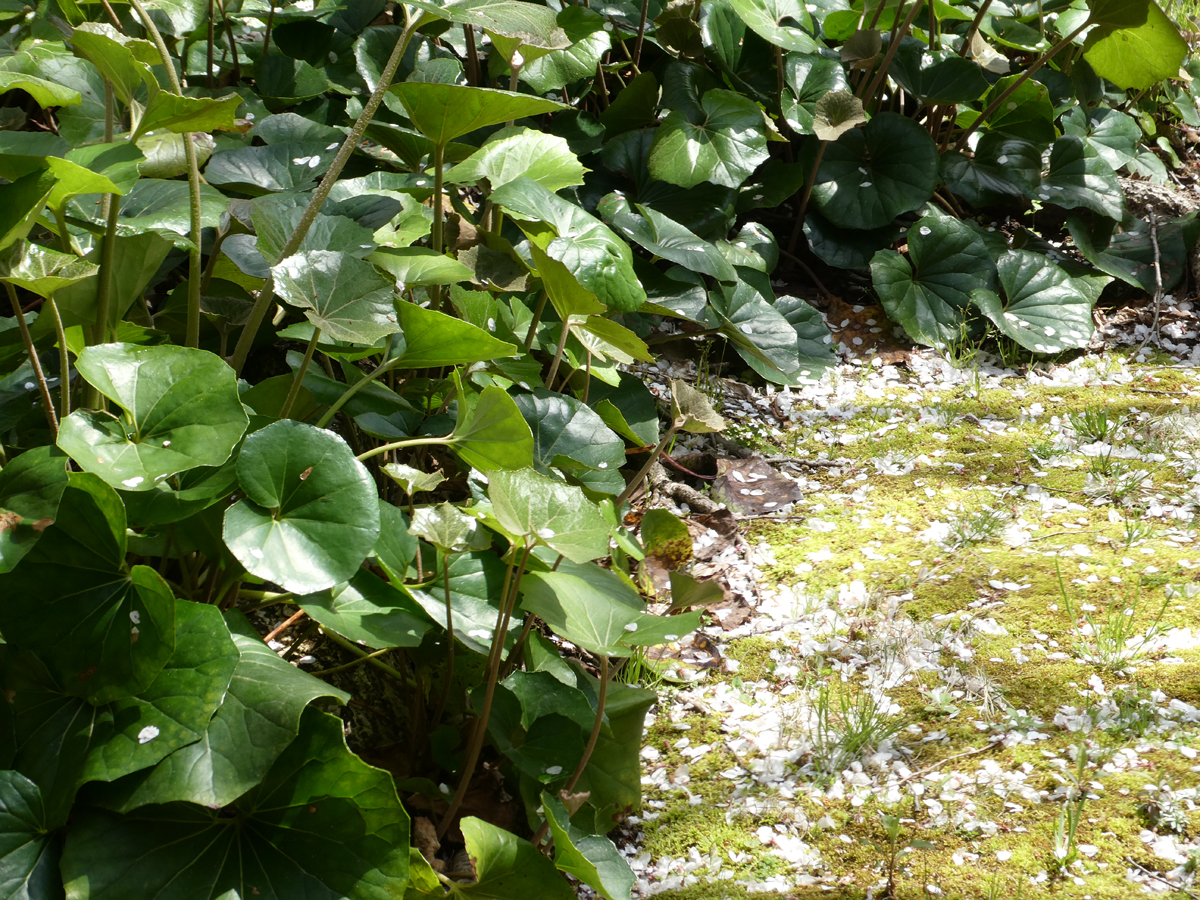 地面には花びらが一面に散り、白くなっています。