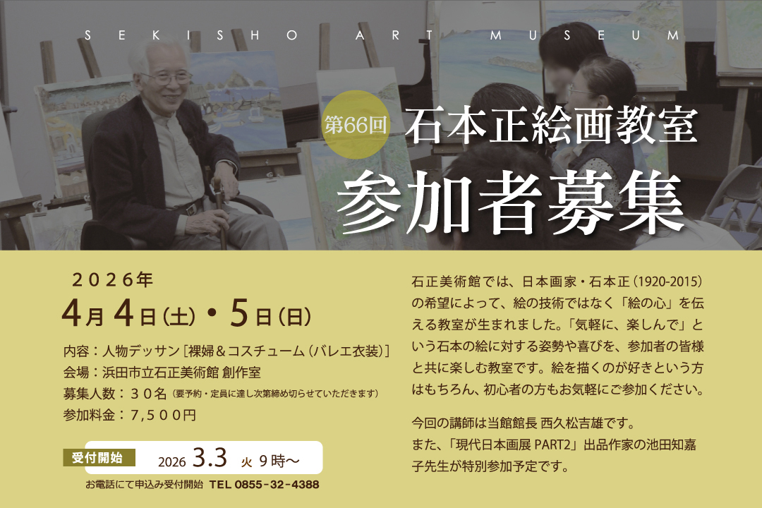 | 石本正記念展示室 | 企画展「石本正の視点vol.1 朱(あか)と白」 2026年3月20日(金祝)~5月24日(日) |