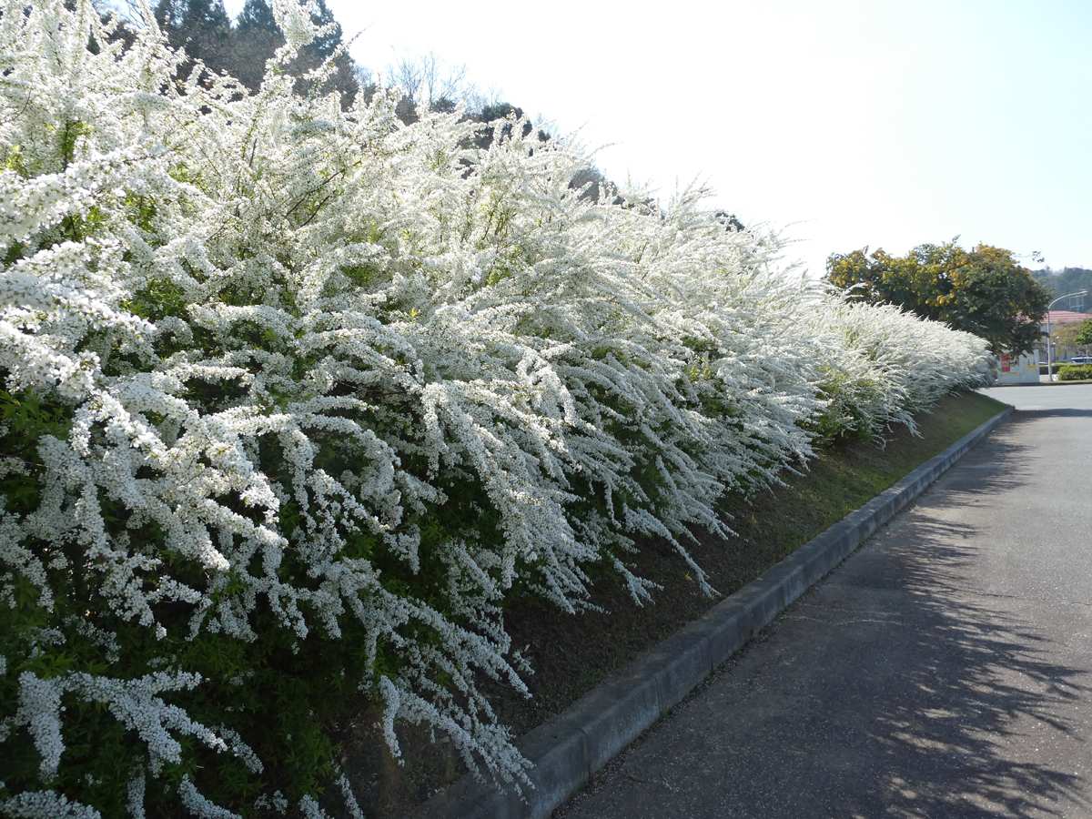 当館前の駐車場ではユキヤナギの花も満開となっております。